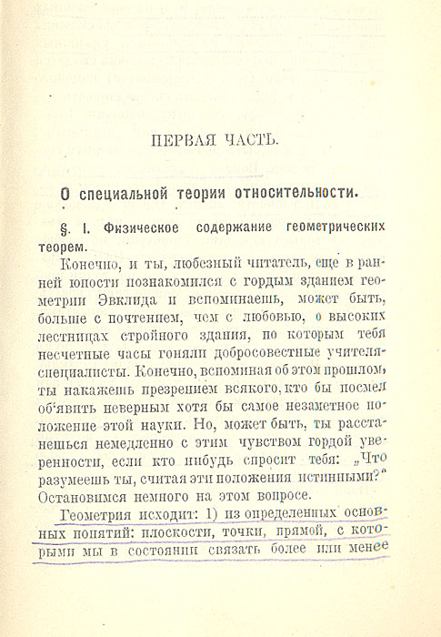 Эйнштейн вводит читателя в основы физики и объясняет, что наше представление о пространстве, времени и гравитации неправильно. Он говорит о том, что эти концепции должны быть пересмотрены в свете относительности.