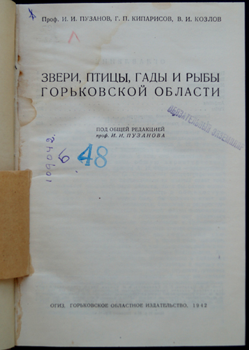 Пузанов И. И., Кипарисов Г. П., Козлов В. И. Звери, птицы, гады и рыбы Горьковской области