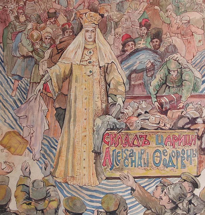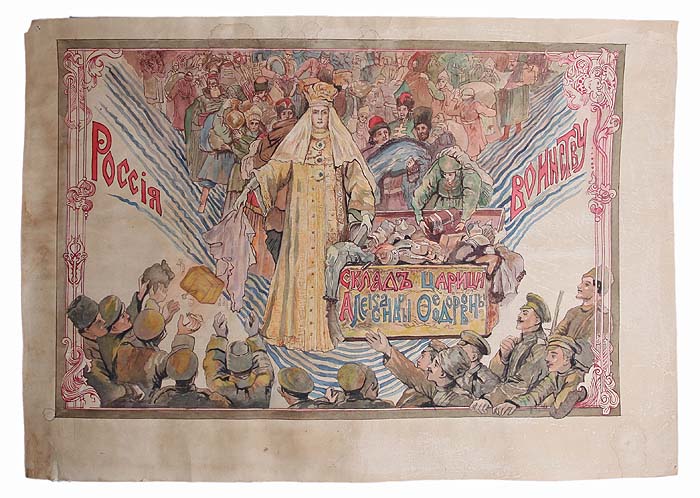 Россия воинству. Склад царицы Александры Федоровны. Рисунок, акварель. Российская Империя, 1910-е гг.