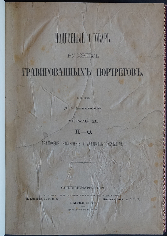 Ровинский Д.А. Подробный словарь русских гравированных портретов. В двух томах