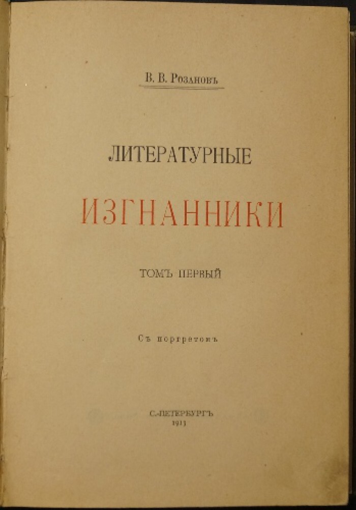 Розанов В.В. Литературные изгнанники. Том первый