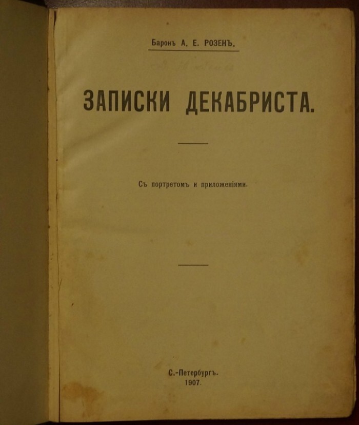 Розен А.Е. Записки декабриста. С портретом и приложениями
