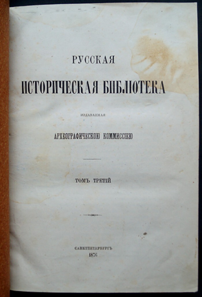 Русская историческая библиотека, издаваемая Археографической комиссией: Том третий