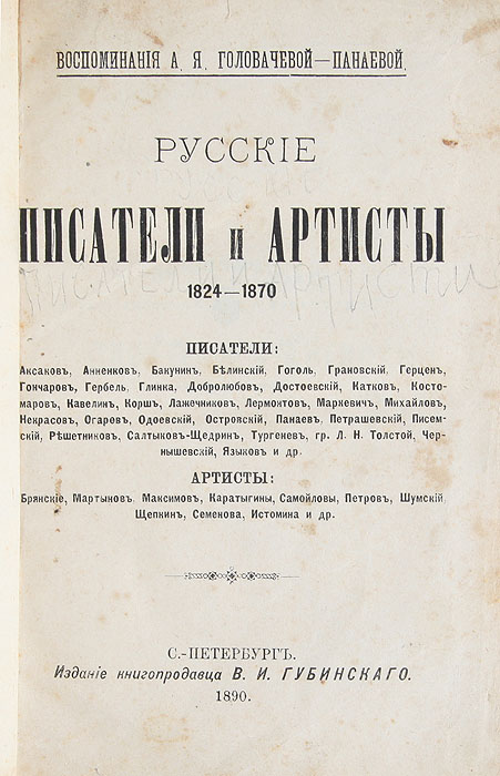 Русские писатели и артисты. Воспоминания А. Я. ГоловачевойПанаевой