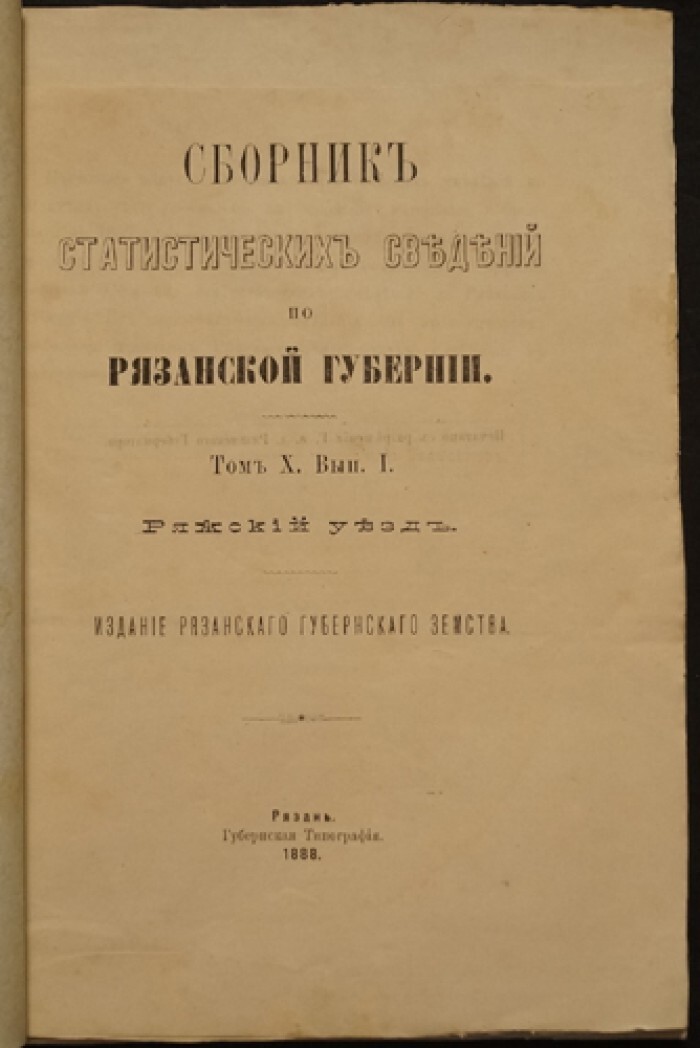 Сборник статистических сведений по Рязанской губернии. Том X, вып. I. Ряжский уезд.