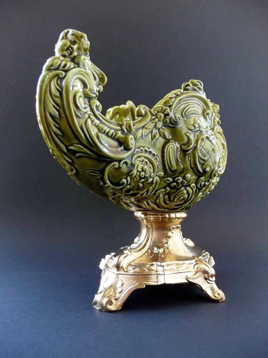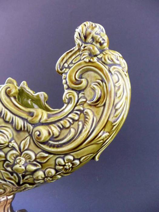 Schutz Cilli Majolica! Ваза кашпо "Ангелочки". Фаянс, майолика, металл. Австрия, Schutz Cilli, около 1900 года