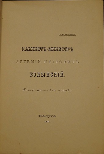 Шангин В.В. Кабинет-министр Артемий Петрович Волынский. Биографический очерк