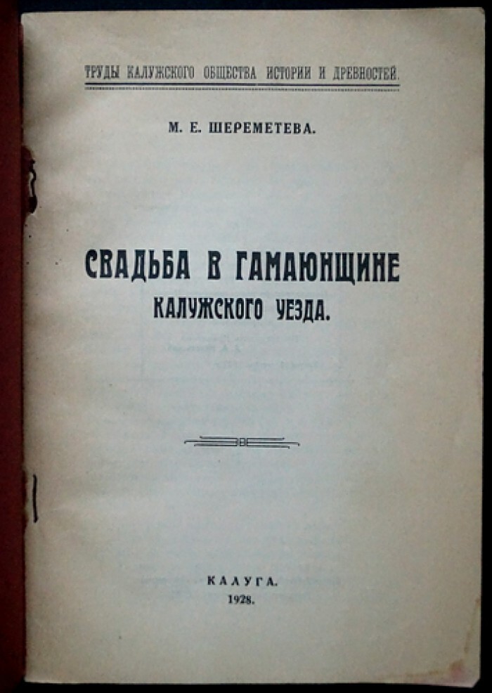 Шереметева М.Е. Свадьба в Гамаюнщине Калужского уезда.