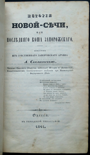Книга "История Новой Сечи, или последнего коша запорожского" автора А. Скальковского рассказывает о событиях, происходивших на Запорожской Сечи в XVIII веке.