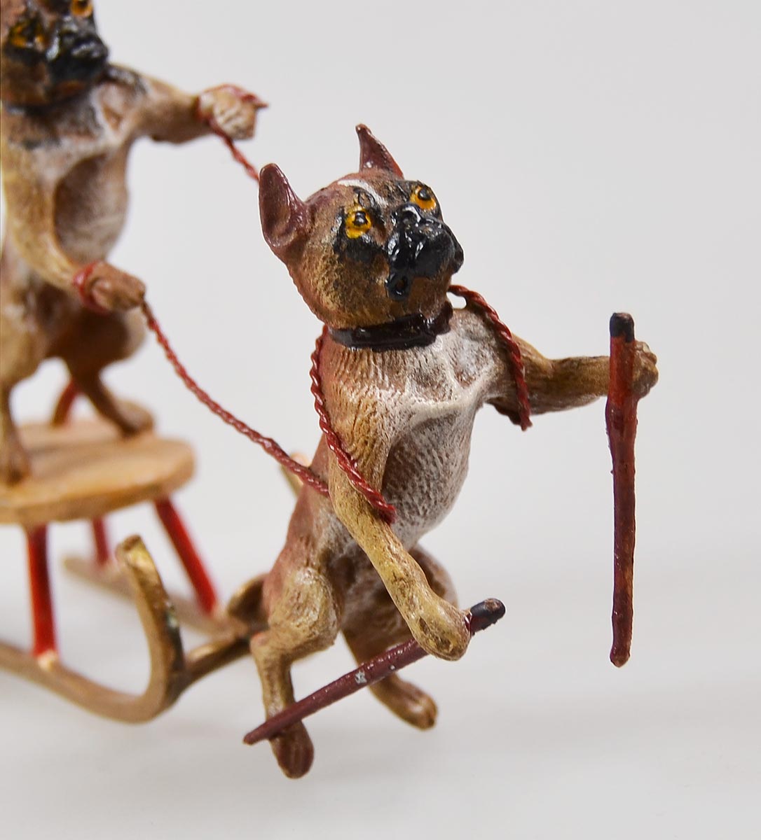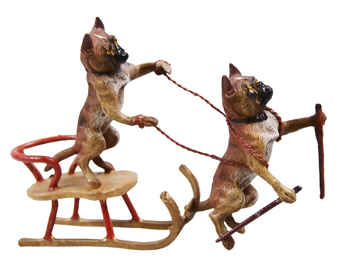 Скульптура миниатюра "Два мопса на санях". Венская бронза. Австрия, начало XX века