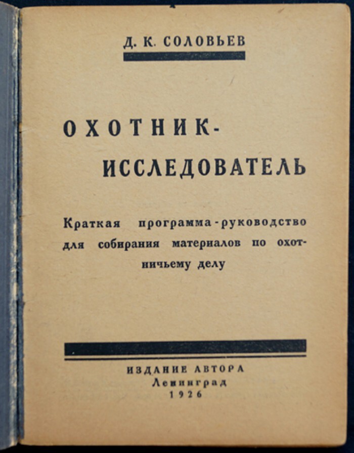 Соловьев Д.К. Охотник - Исследователь (Краткая программа - руководства для собирания материалов по охотничьему делу).
