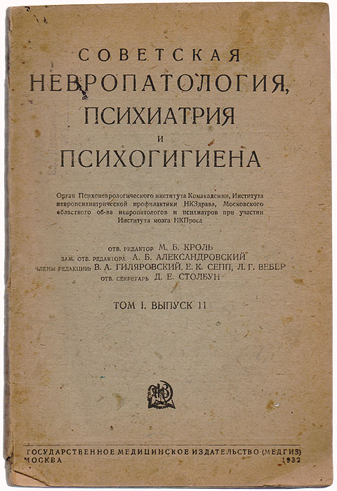 Советская невропатология, психиатрия и психогигиена. Том 1. Выпуск II