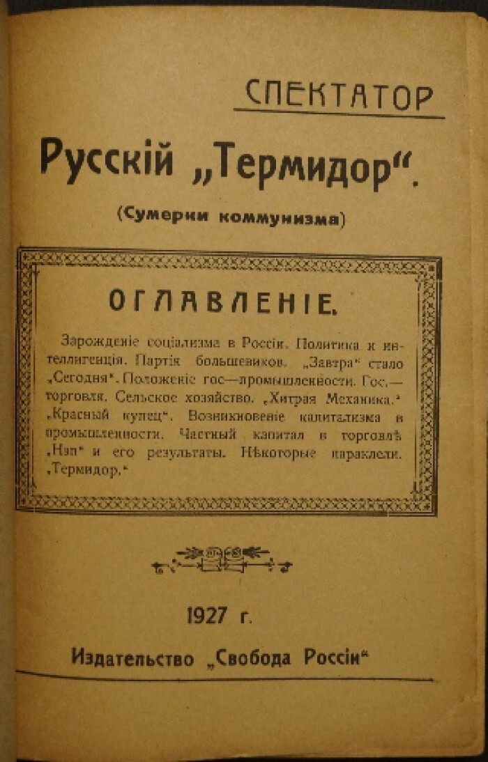 Спектатор. Русский Термидор (Сумерки коммунизма).