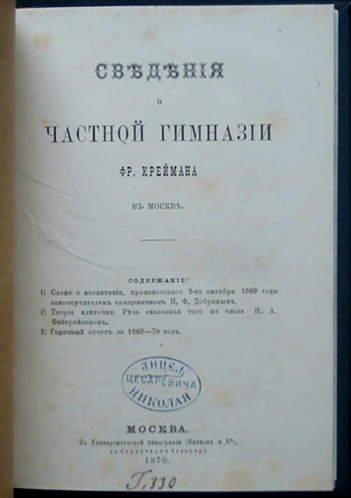 "Сведения о частной гимназии Фр. Креймана в Москве" является полезным руководством для тех, кто ищет информацию о данной гимназии и желает принять решение об обучении своего ребенка или самостоятельного образования.