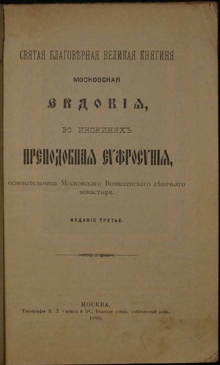 Святая благоверная Великая княгиня московская Евдокия, во инокинях Преподобная Евфросиния, основательница Московского Вознесенского