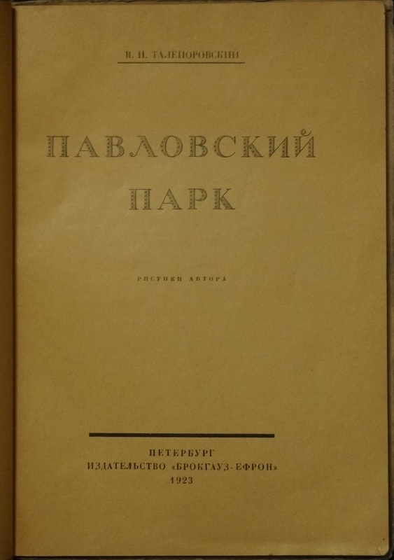 "Павловский парк" - книга, написанная Талепоровским В.Н., в которой автор рассказывает о Павловском парке, одном из самых известных и красивых парков Санкт-Петербурга.