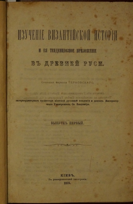 Терновский Филипп. Изучение византийской истории и ее тенденциозное приложение в Древней Руси. В двух выпусках в одном переплете.