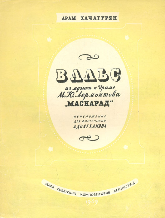 Книга "Вальс из музыки к драме М. Ю. Лермонтова "Маскарад"" – это сборник нот фрагмента музыки, написанной композитором Арамом Хачатуряном для спектакля по пьесе М. Ю. Лермонтова "Маскарад".