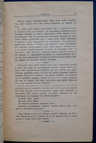 В книге автор обращается к широкому спектру тем, включая философию, политику, искусство, религию и сексуальность. Вейнингер известен своими радикальными взглядами и смелой мыслью, и его последние работы отражают его необычные и инновационные взгляды на разные аспекты человеческой жизни.