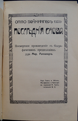 Книга также содержит некоторые из последних биографических деталей об авторе и его жизни. Вейнингер сконцентрировался на исследовании собственного разума и состояния сознания, и его последние слова являются своего рода "завещанием" его мыслей и идей для будущих поколений.