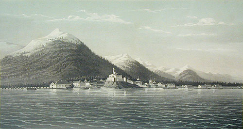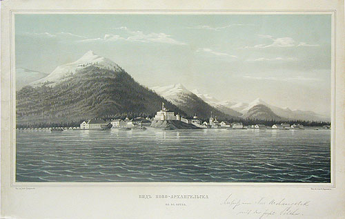 Вид Ново-Архангельска. Цветная литография (вторая половина XIX века), Россия