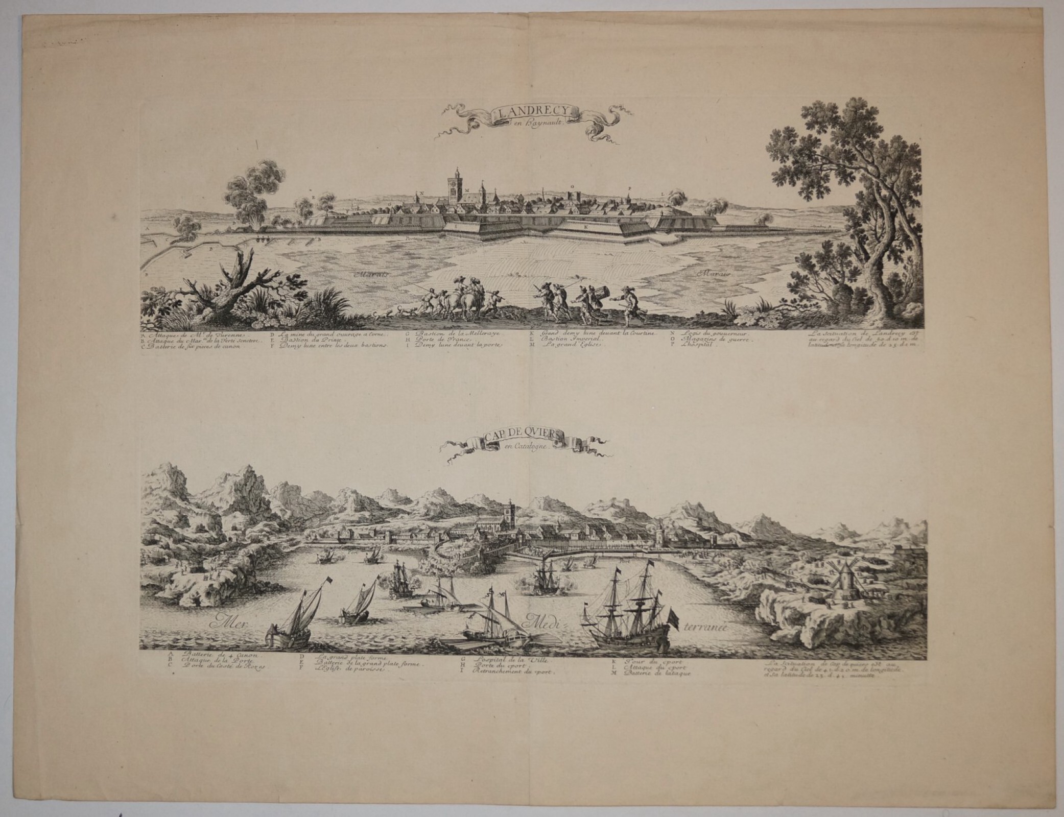 Виды испанских городов Ландреси и Кадакес в Каталонии / Landrecy en Haynault. Cap de Quiers en Catalogne
