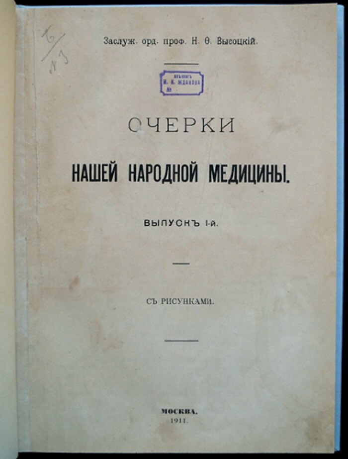 Высоцкий Н.Ф., проф. Очерки нашей народной медицины. Выпуск I-й