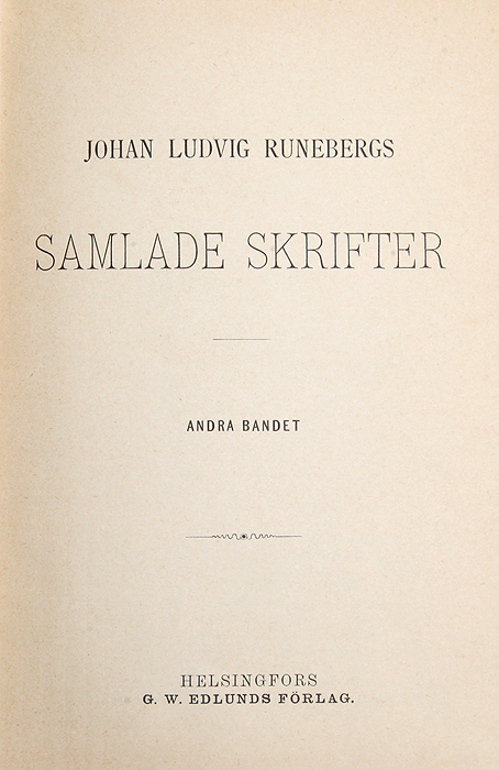 "Йохан Людвиг Рунеберг. Собрание сочинений" - это комплект из двух книг, содержащих произведения известного финского поэта Йохана Людвига Рунеберга.