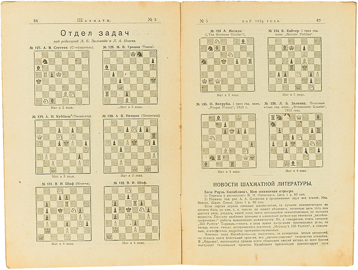 Журнал "Шахматы. Ежемесячный журнал" за 1924 год (комплект из 10 журналов)
