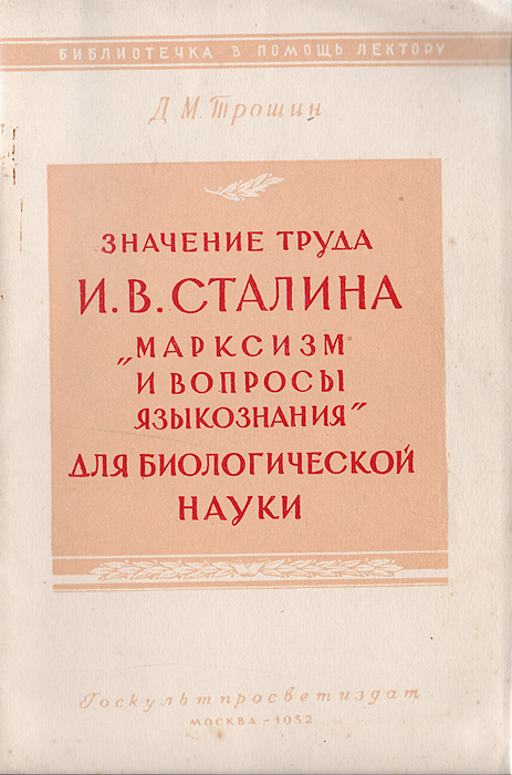 Значение труда И. В. Сталина "Марксизм и вопросы языкознания" для биологической науки